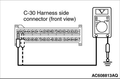 (7)Measure the voltage between C-30 harness side connector terminals 45, 46 and body ground.