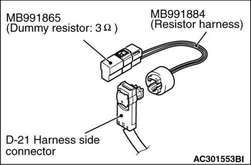 (4)Connect special tool MB991884 to the D-21 harness side connector.