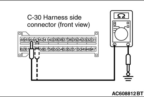 (5)Check for continuity between C-30 harness side connector terminals 43, 44 and body ground.