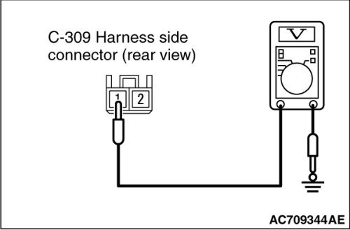 (2)Measure the voltage between the C-309 harness side connector terminal No. 1 and the body ground.