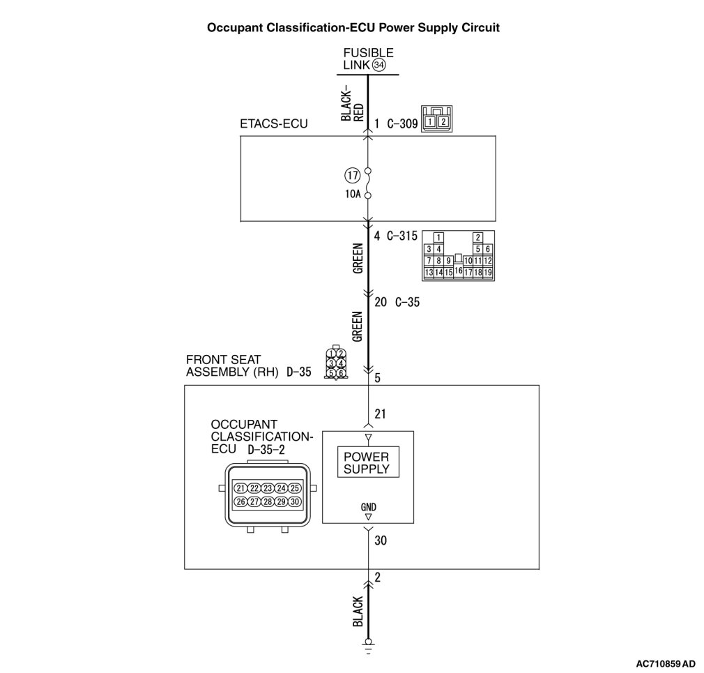 STEP 6. Wiring harness check between the fusible link (34) and the C-309 ETACS-ECU connector terminal No. 1.
