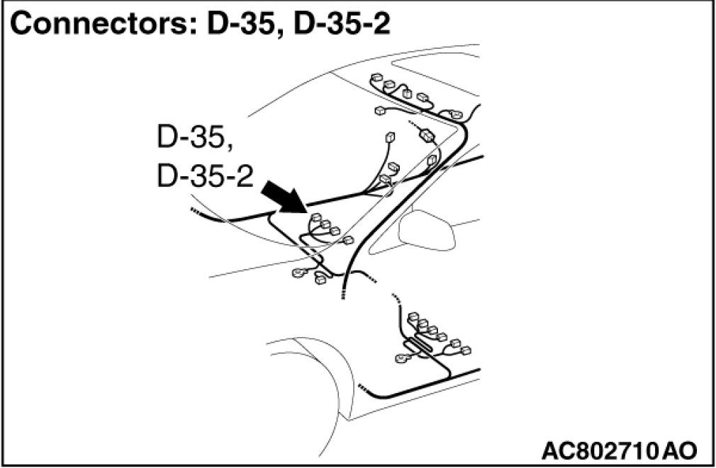 Prior to the wiring harness inspecting, check the front seat assembly (RH) connector D-35