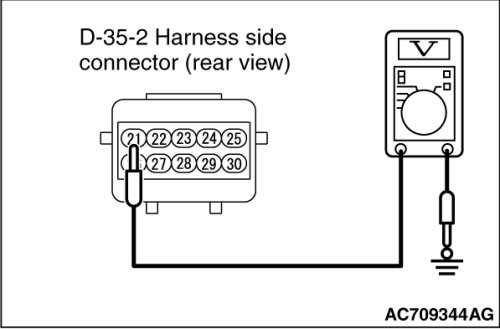 (2)Measure the voltage between the D-35-2 harness side connector terminal No. 21 and the body ground.