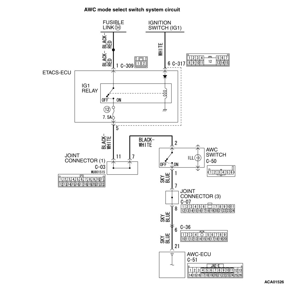 - AWC-ECU sends ACD control mode to the combination meter via ETACS-ECU.