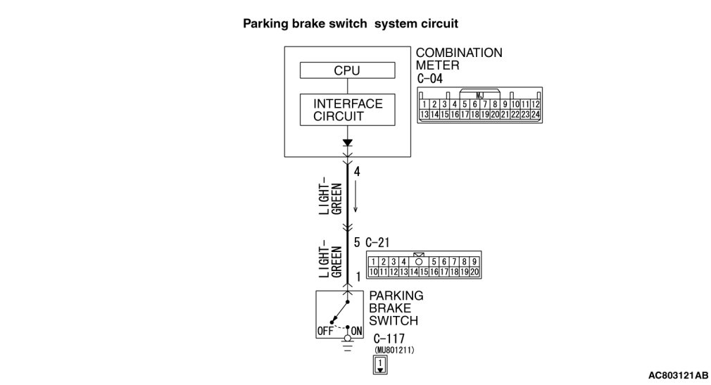 AWC-ECU receives the parking brake switch signal from the combination meter via ETACS-ECU.