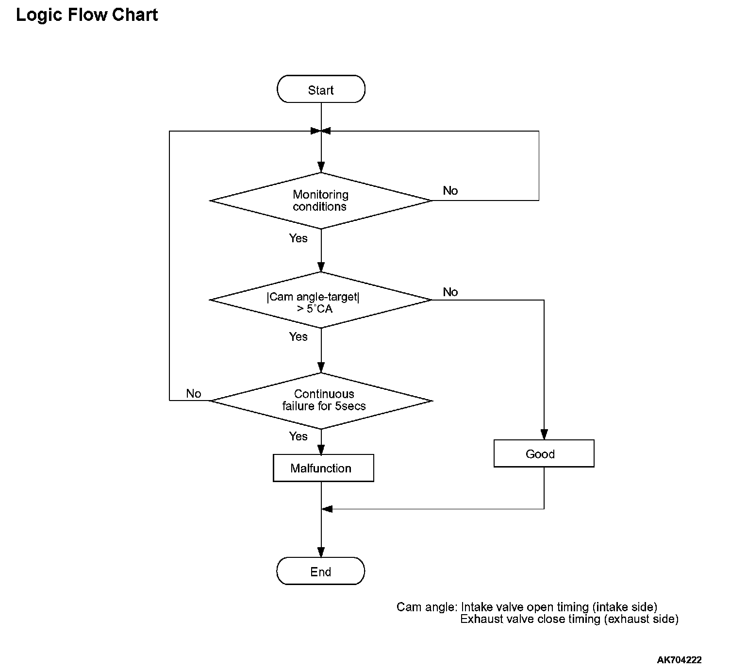 - The difference between the actual intake valve opening timing and the intake valve target opening timing is more than 5 degrees for 5 seconds.