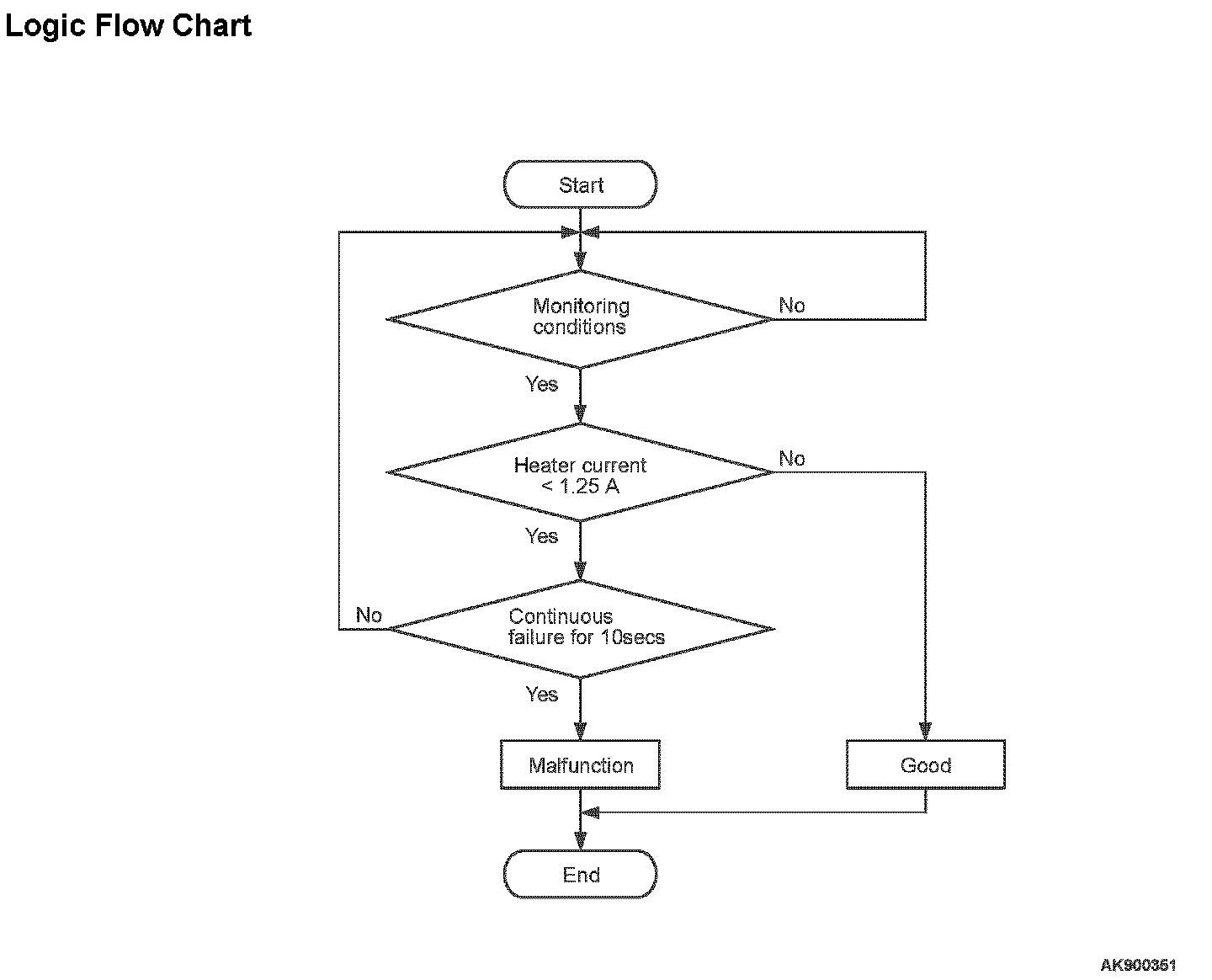 - The ECM checks whether the heater current is within a specified range when the heater is energized.