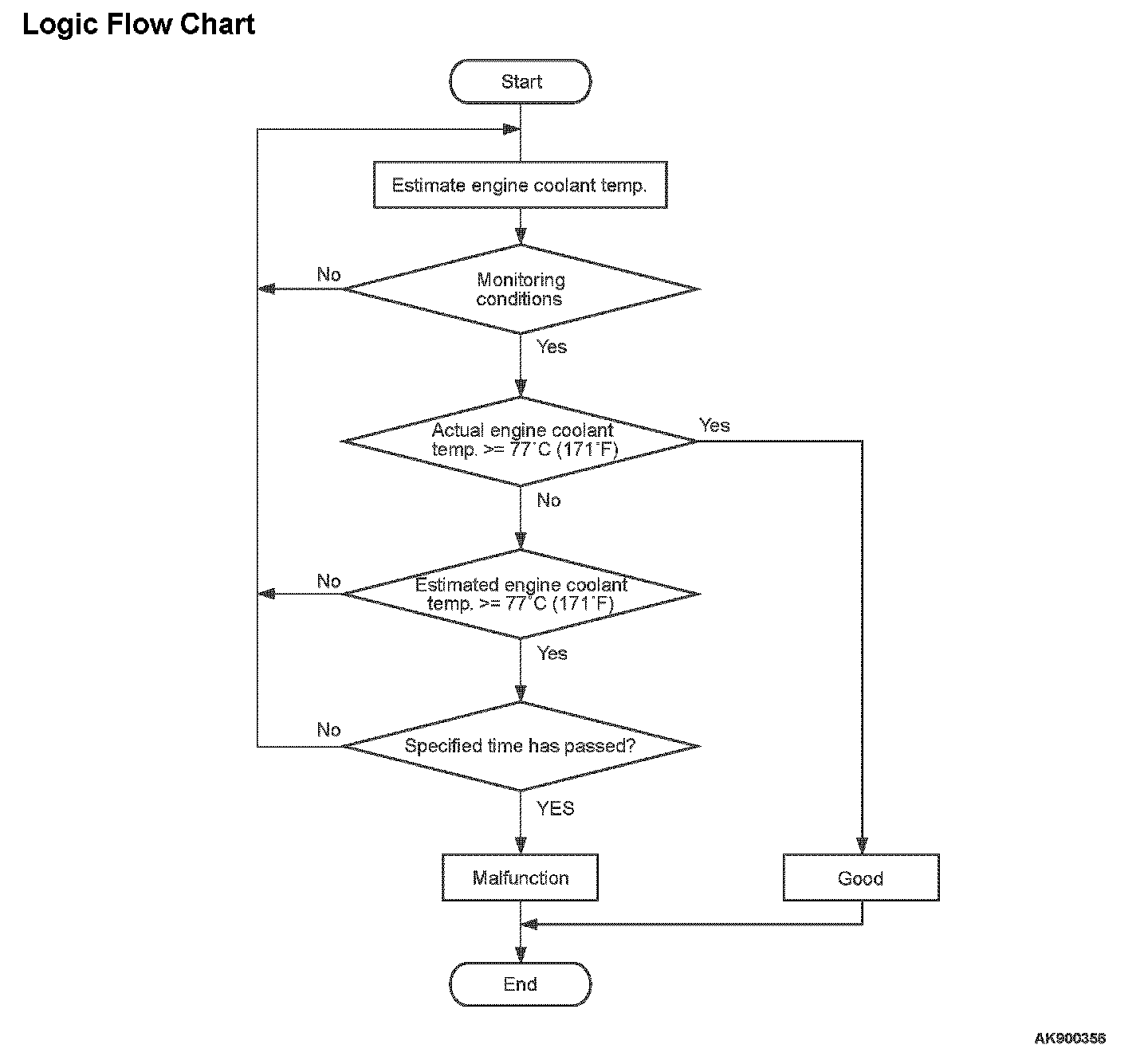 - After the estimated engine coolant temperature rises above 77 °C (171 °F), the actual engine coolant temperature is less than 77 °C (171 °F) even though the specified time has passed.