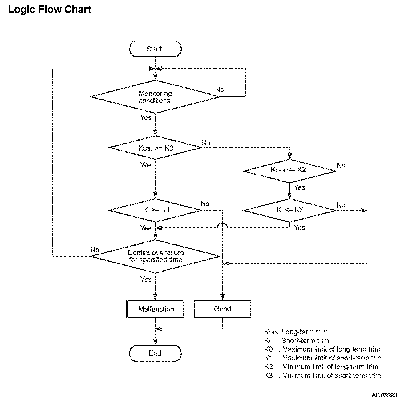 - The ECM checks whether the fuel trim value is within a specified range.