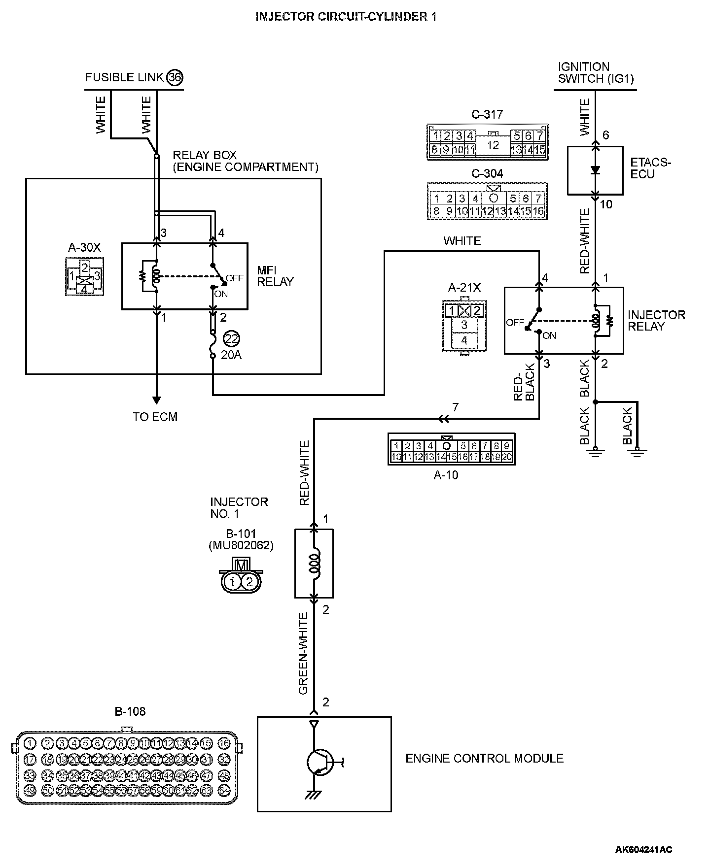 - The injector power is supplied from the injector relay (terminal No. 3).