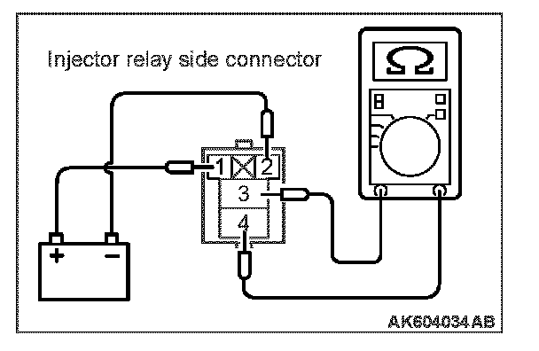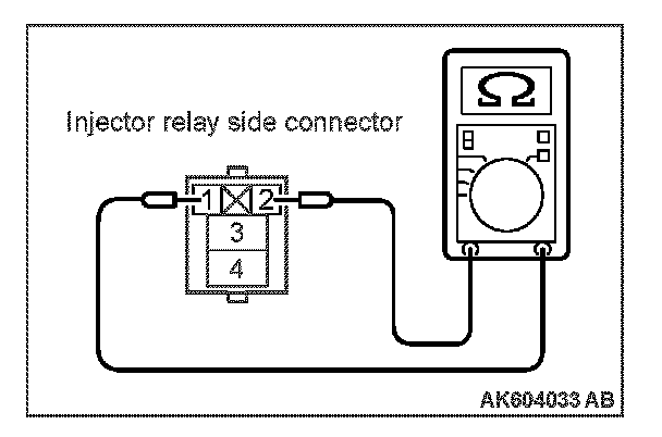2. Check for continuity between the injector relay terminal No. 1 and No. 2.
