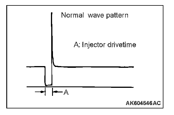 NOTE: When checking with the ECM side connector, disconnect all ECM connectors. Connect the power plant ECU check harness special tool MB992110 between the separated connectors. Then connect the oscilloscope probe to the check harness connector terminal No. 2.