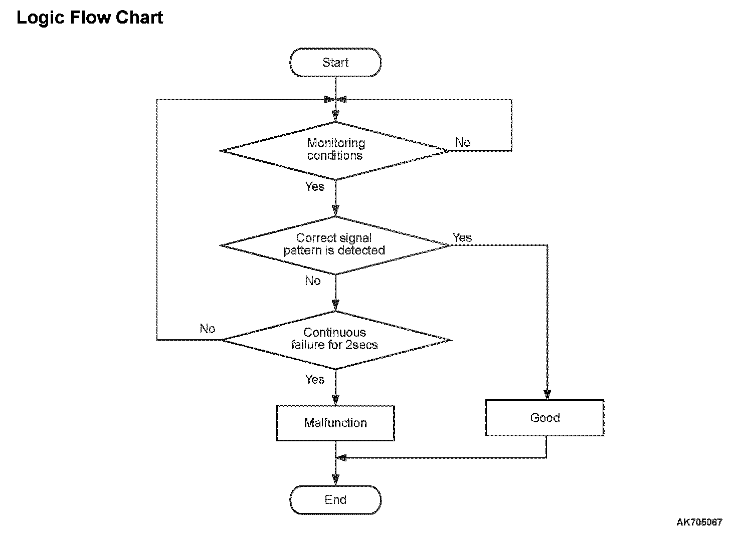 - Crankshaft position sensor output voltage does not change (no pulse signal is input) for 2 seconds.