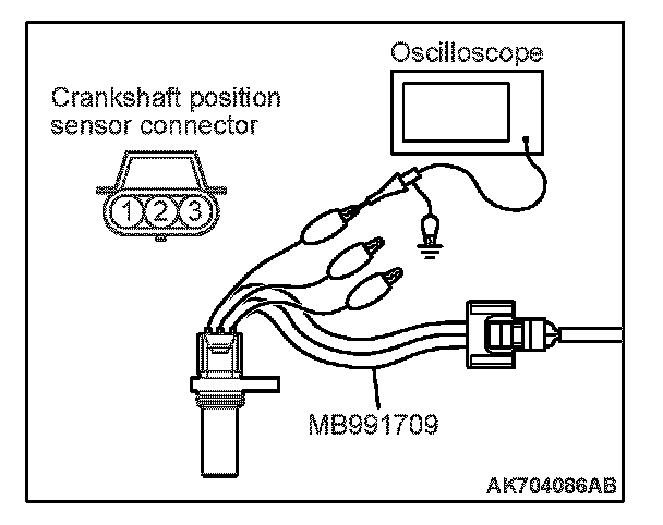 2. Connect the oscilloscope probe to terminal No. 3 of the crankshaft position sensor connector.