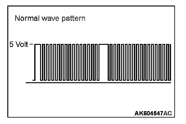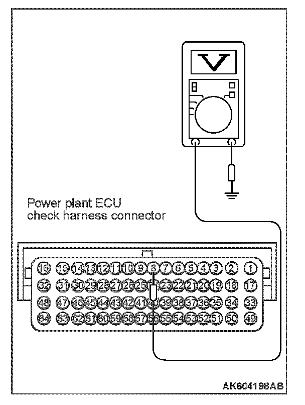 NOTE: When checking with the ECM side connector, disconnect all ECM connectors. Connect the power plant ECU check harness special tool MB992110 between the separated connectors. Then connect the oscilloscope probe to the check harness connector terminal No. 8.