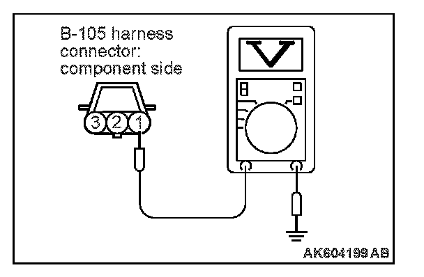 STEP 5. Measure the sensor supply voltage at crankshaft position sensor harness side connector B-105.