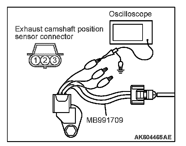2. Connect the oscilloscope probe to the exhaust camshaft position sensor side connector terminal No. 3.