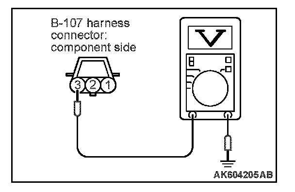 STEP 8. Measure the sensor supply voltage at exhaust camshaft position sensor harness side connector B-107.