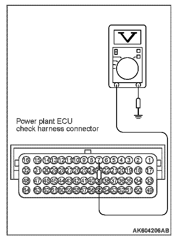 NOTE: When checking with the ECM side connector, disconnect all ECM connectors. Connect the power plant ECU check harness special tool MB992110 between the separated connectors. Then connect the oscilloscope probe to the check harness connector terminal No. 7.