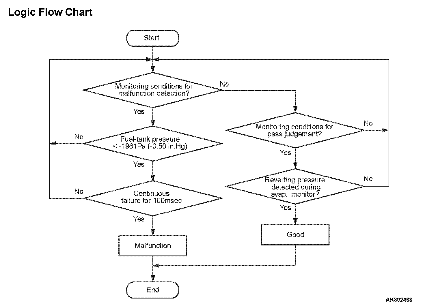 - The pressure in the fuel tank is less than -1961 Pa (-0.58 in.Hg) for 0.1 second.
