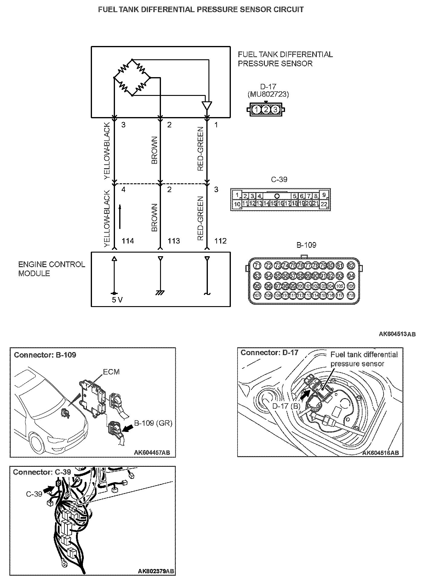- The ECM (terminal No. 114) supplies a 5 volts reference signal to the fuel tank differential pressure sensor (terminal No. 3). The fuel tank differential pressure sensor (terminal No. 2) is grounded through the ECM (terminal No. 113).