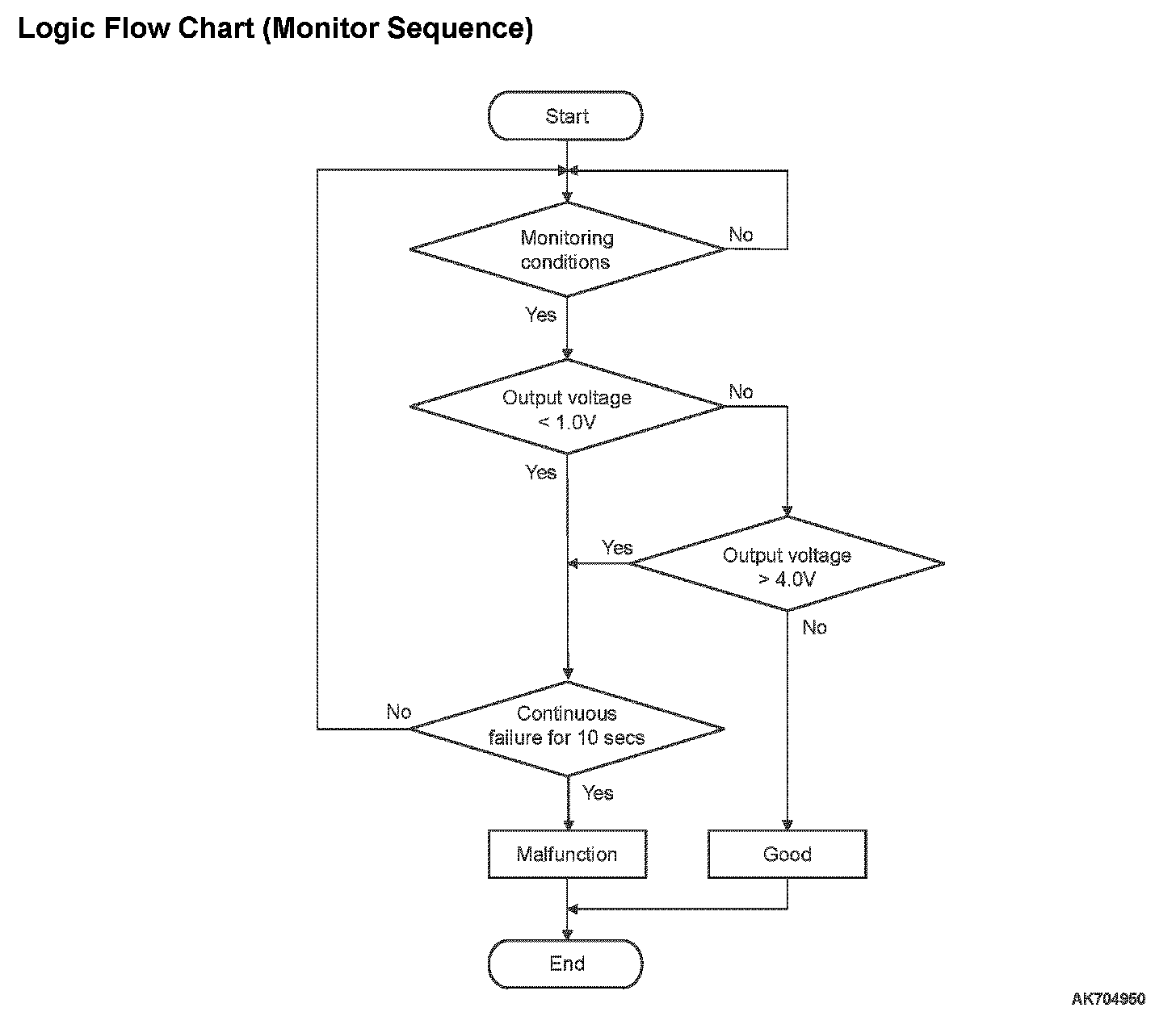 - When the evaporative emission purge solenoid is off, the fuel tank differential pressure sensor output voltage is less than 1.0 volt for 10 seconds.