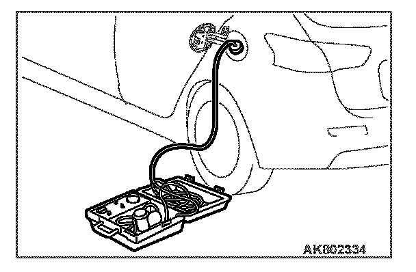6. Connect the evaporative emission system pressure pump (Miller number 6872A) to the fuel tank filler tube by using fuel tank adapter (MLR-8382) and pressurize the fuel tank.