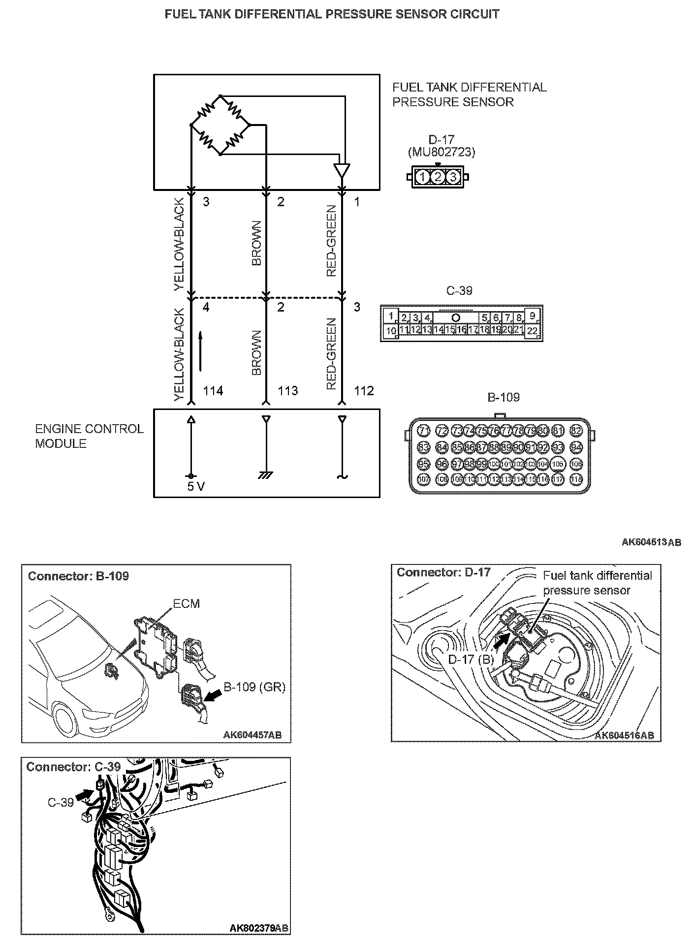 - The ECM (terminal No. 114) supplies a 5 volts reference signal to the fuel tank differential pressure sensor (terminal No. 3). The fuel tank differential pressure sensor (terminal No. 2) is grounded through the ECM (terminal No. 113).