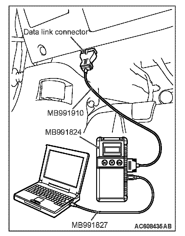 1. Connect scan tool MB991958 to the data link connector.