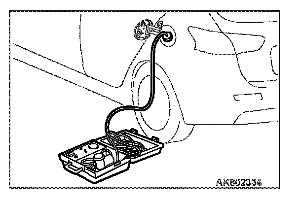 6. Connect the evaporative emission system pressure pump (Miller number 6872A) to the fuel tank filler tube by using fuel tank adapter (MLR-8382) and pressurize the fuel tank.