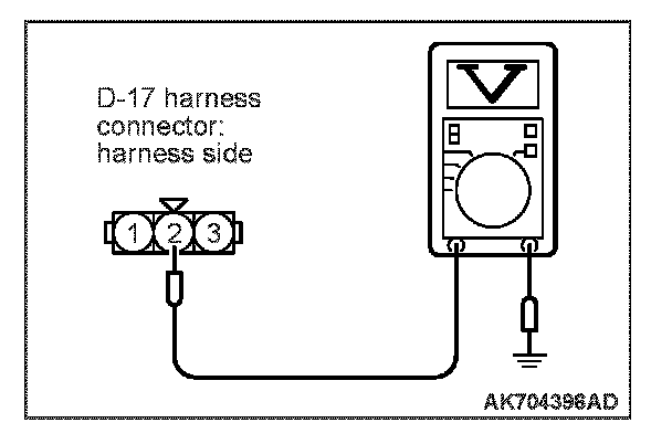 STEP 5. Measure the ground voltage at fuel tank differential pressure sensor connector D-17 by backprobing.