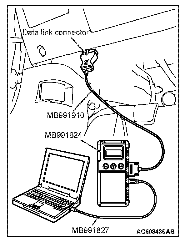 1. Connect scan tool MB991958 to the data link connector.