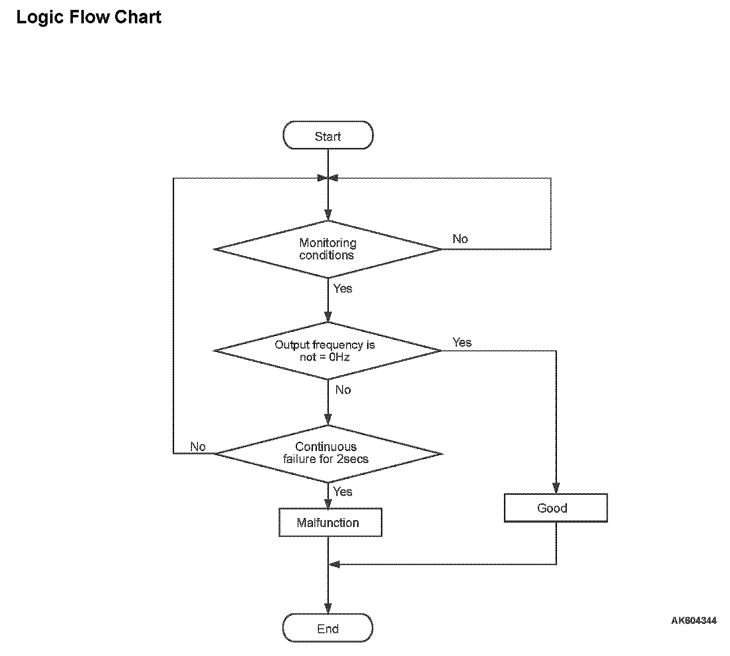 - If the vehicle speed sensor output does not change while the vehicle is being driven in the medium- to high-speed range, a malfunction is determined to have occurred.