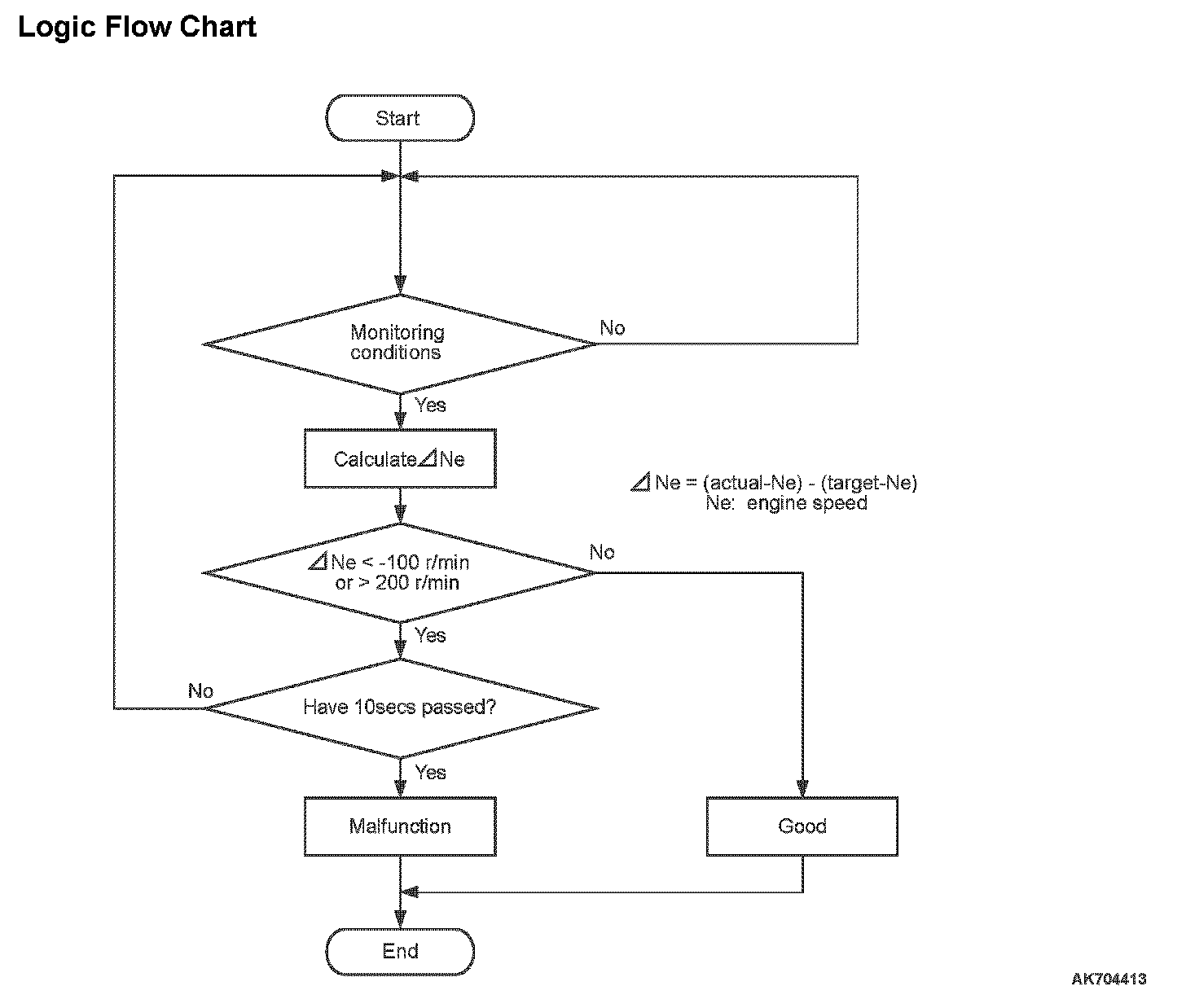 - The actual idle speed is more than the target idle speed by 200 r/min (300 r/min*) or more for 10 seconds.