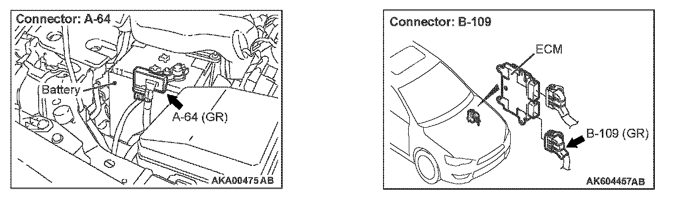 STEP 5. Check for open circuit and short circuit to ground between battery temperature sensor connector A-64 (terminal No. 2) and ECM connector B-109 (terminal No. 98).