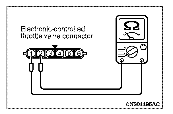 2. Measure the resistance between electronic-controlled throttle valve side connector terminal No. 1 and No. 2.