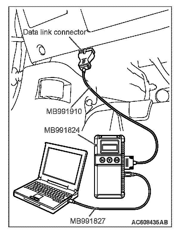 1. Connect scan tool MB991958 to the data link connector.