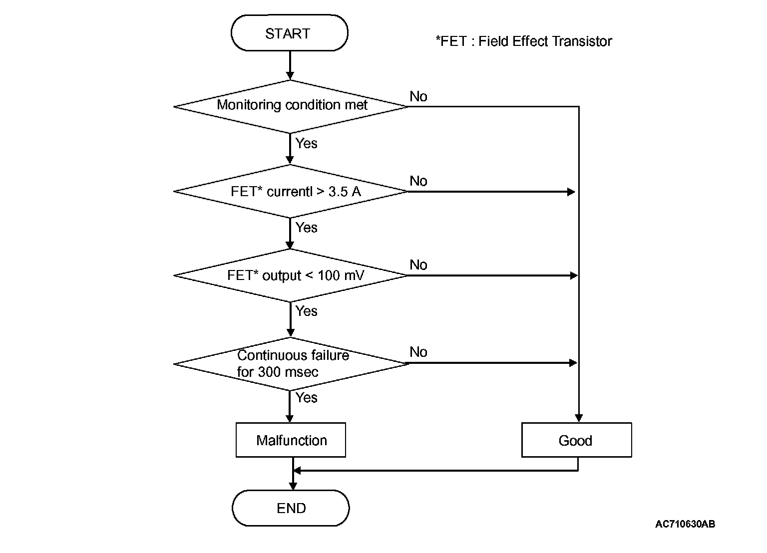 The current of the FET channel shunt is 3.5 A or less, and the FET channel output is 100 mV or more for 300 millisecond.
