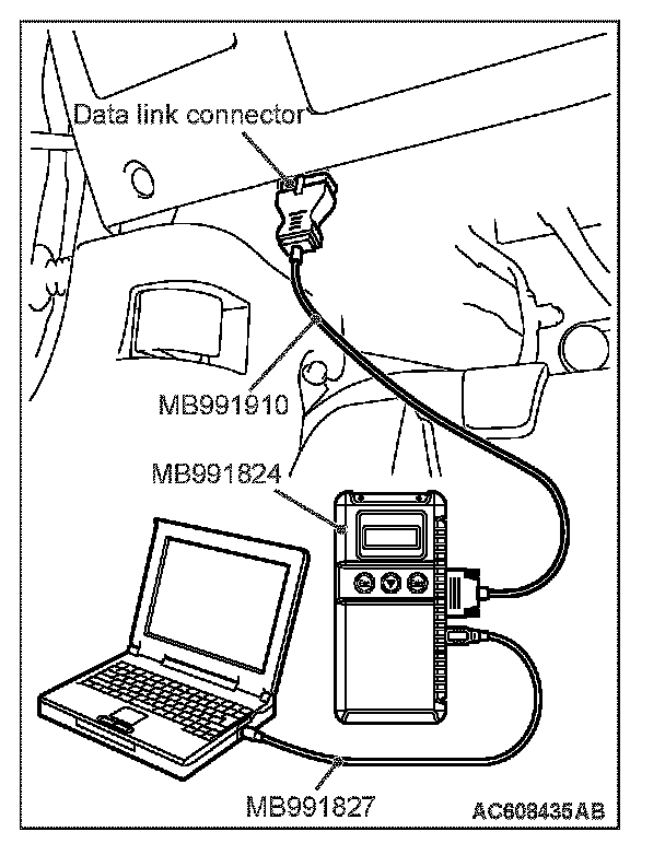 1. Connect scan tool MB991958 to the data link connector.