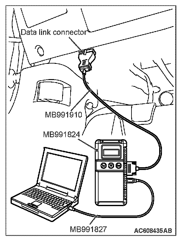 1. Connect scan tool MB991958 to the data link connector.