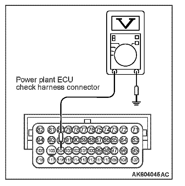 2. Measure the voltage between terminal No. 104 and ground.