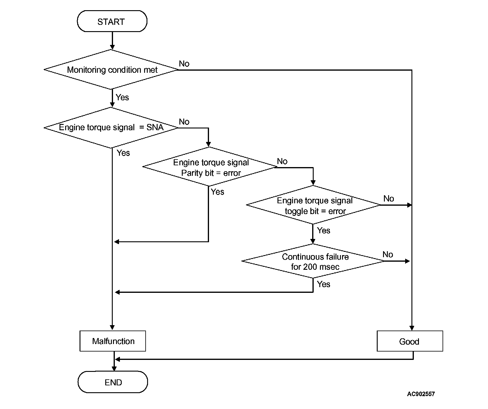 Receives the normal value of the engine torque signal, or the parity/toggle are normal.