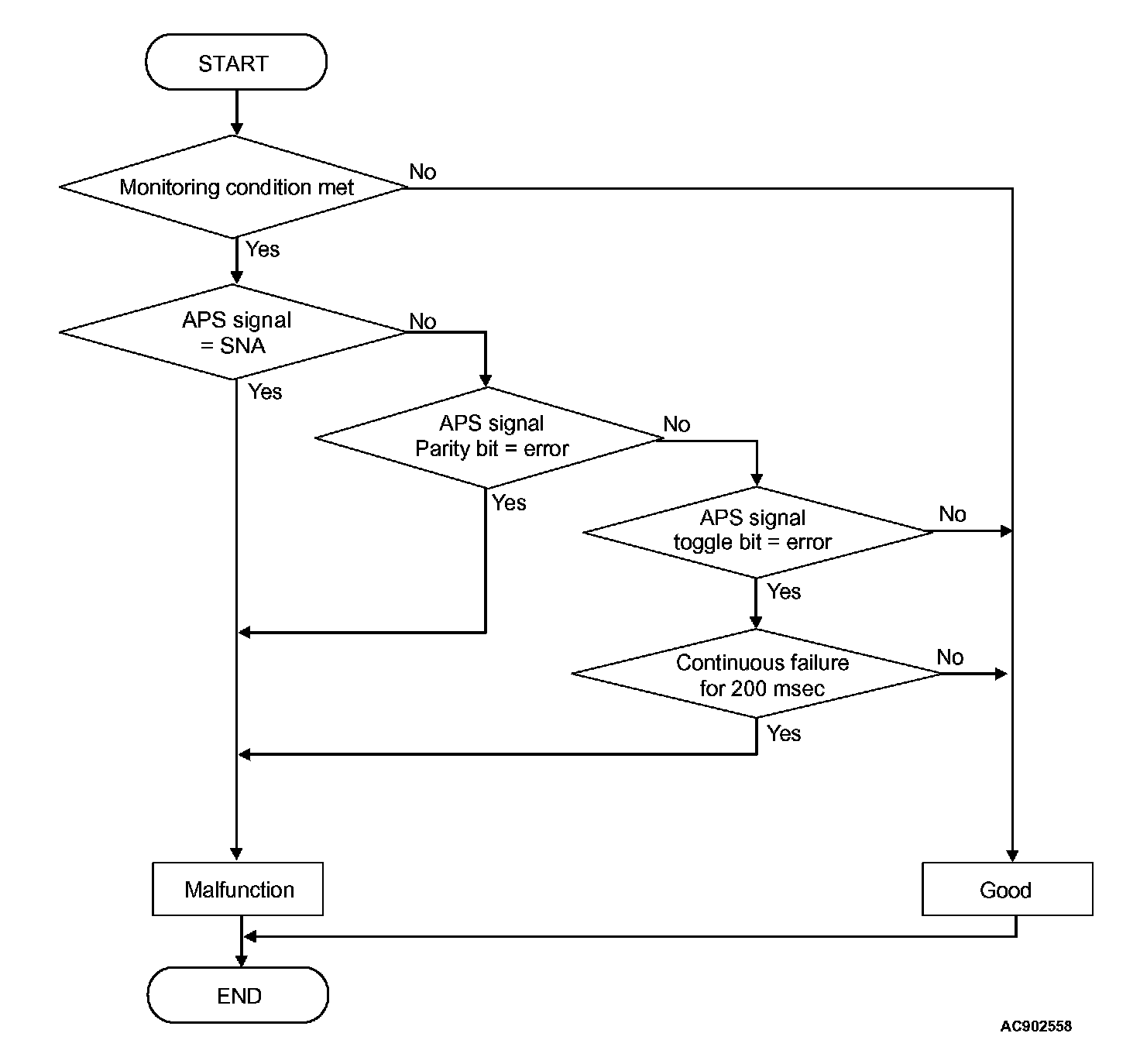 The APS signal from the engine control module is determined to be abnormal.