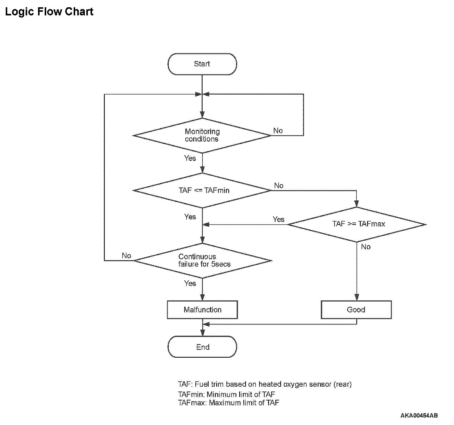 - The amount of compensated lean air/fuel ratio is output by the heated oxygen sensor (rear). The status that the amount of compensated lean air/fuel ratio is greater than the specified amount continues for 5 seconds.