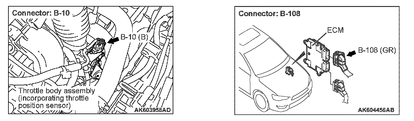 STEP 9. Check for harness damage between electronic-controlled throttle valve connector B-10 (terminal No. 5) and ECM connector B-108 (terminal No. 12).