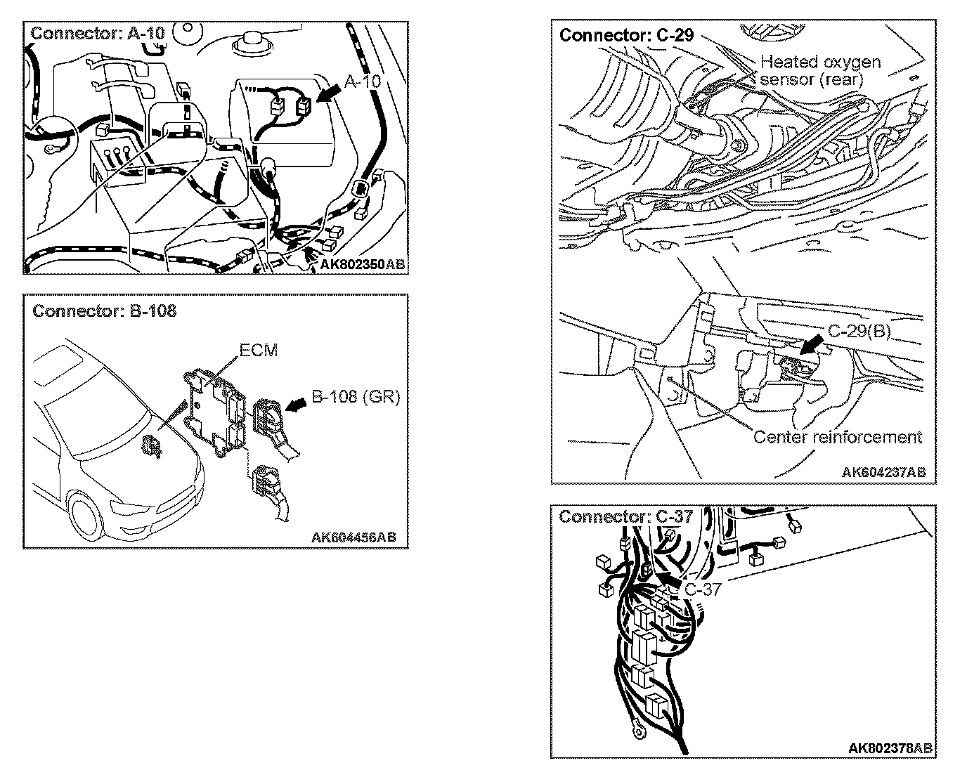 1. Disconnect the heated oxygen sensor (rear) connector C-29 and connect test harness special tool MB991658 to the connector on the heated oxygen sensor (rear) side.