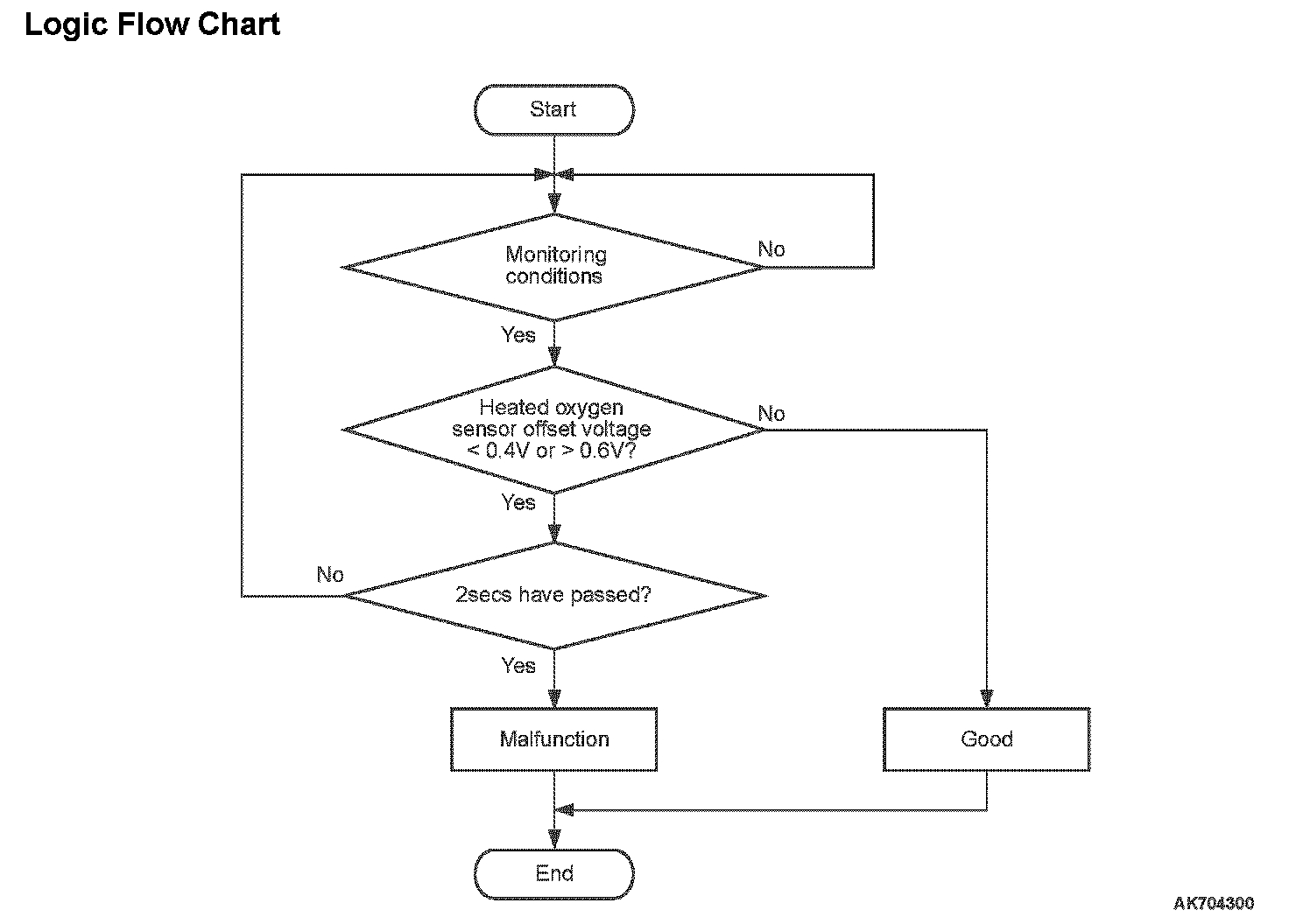 - Heated oxygen sensor offset voltage is less than 0.4 volt for 2 seconds.