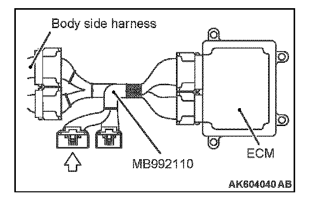 1. Disconnect all ECM connectors. Connect the power plant ECU check harness special tool MB992110 between the separated connectors.