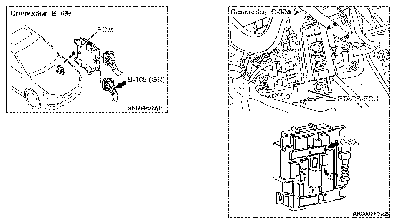 STEP 4. Check for short circuit to power supply between ETACS-ECU connector C-304 (terminal No. 10) and ECM connector B-109 (terminal No. 92).