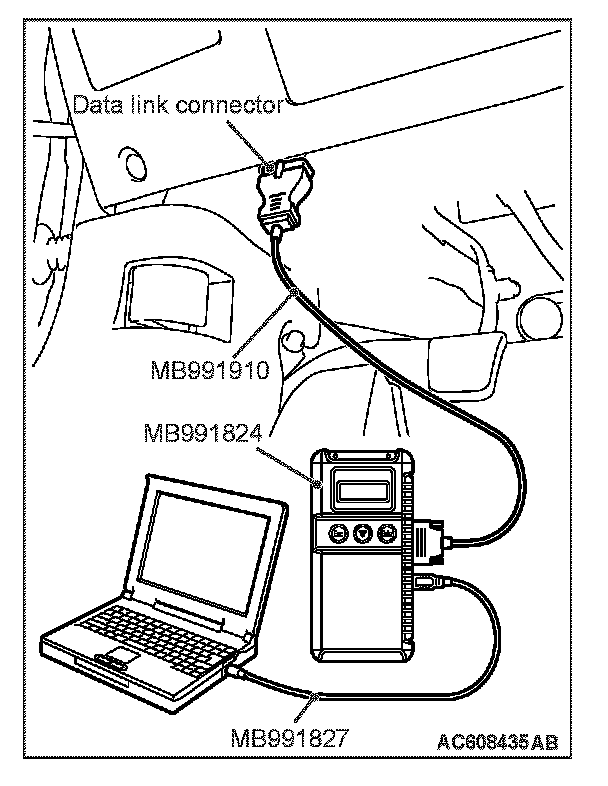 1. Connect scan tool MB991958 to the data link connector.